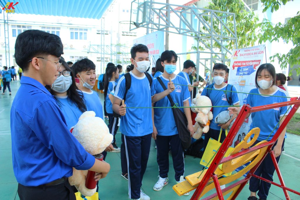 Tại gian hàng Trường Cao đẳng Bách Khoa Sài Gòn, ngoài những trò chơi gian hàng vui nhộn, các bạn học sinh còn được cung cấp những thông tin mới nhất về kỳ thi tốt nghiệp THPT, quy chế tuyển sinh năm 2023 và giải đáp thắc mắc, băn khoăn về thông tin tuyển sinh cũng như tư vấn chọn ngành, chọn trường nè.