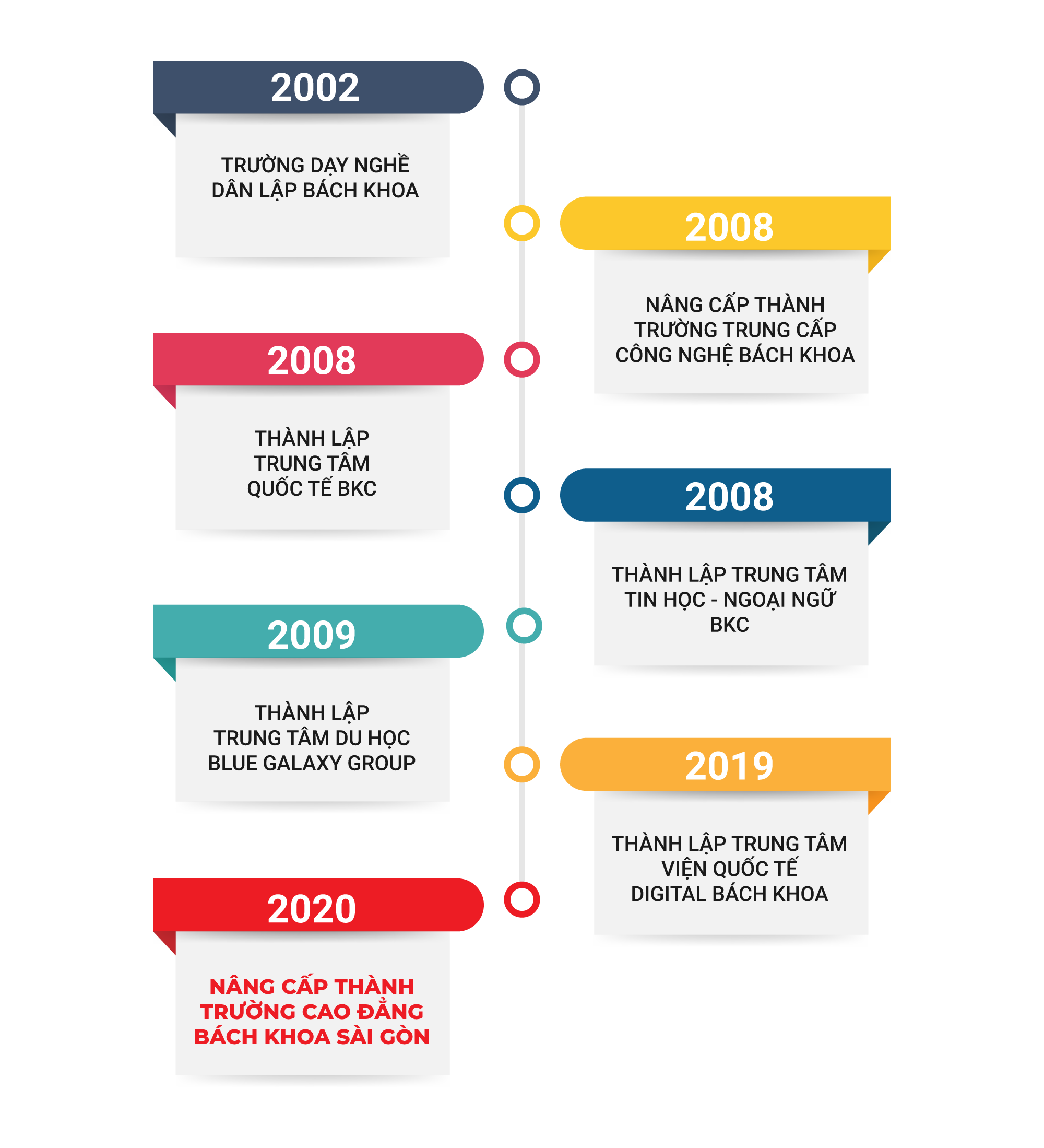 Tiền thân của BKC là Trung tâm Đào tạo Lập trình viên Quốc tế Bách Khoa – APTECH, được thành lập vào năm 2002. Hội đồng sáng lập gồm các Tiến sĩ, Thạc sĩ giàu kinh nghiệm giảng dạy và thực tiễn trong nhiều lĩnh vực với mong muốn đóng góp vào sự phát triển nguồn nhân lực chất lượng cao cho xã hội.